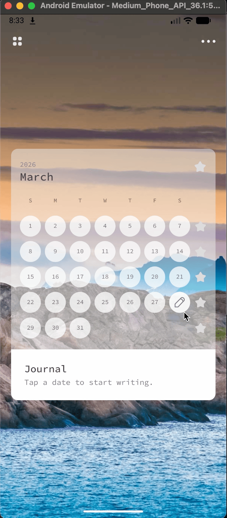 A quiet journaling experience designed for in-between moments, where motion guides without interrupting.